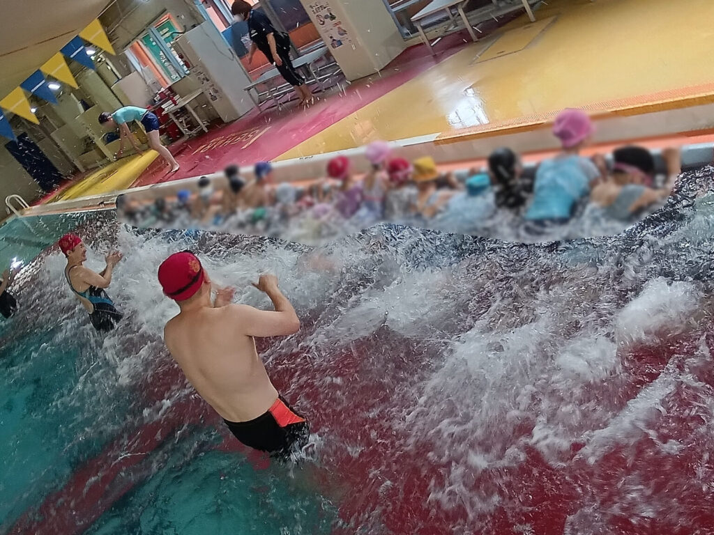 5月22日より当クラブ送迎バスをご利用いただき、クラス別にて水泳授業を行っています。