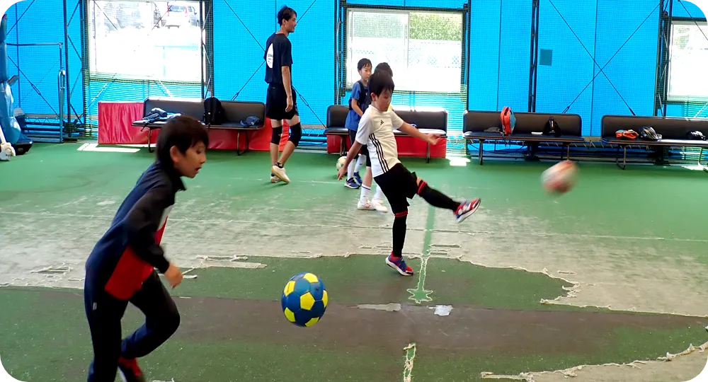 身体を動かす楽しさを学び、たくさんボールに触れて遊びを通しながらフットサルを好きになるように練習していきます。ボールをとめる・蹴る・運ぶといった基礎を練習して、学年が上がるにつれ基礎練習を中心に個人の技術を磨いていきます。お友達と協力しながらチームワークの大切さを学び、精神的成長にも役立てます。また個人技術だけでなく、戦術練習や対人練習を中心としたチーム練習にも力を入れています。