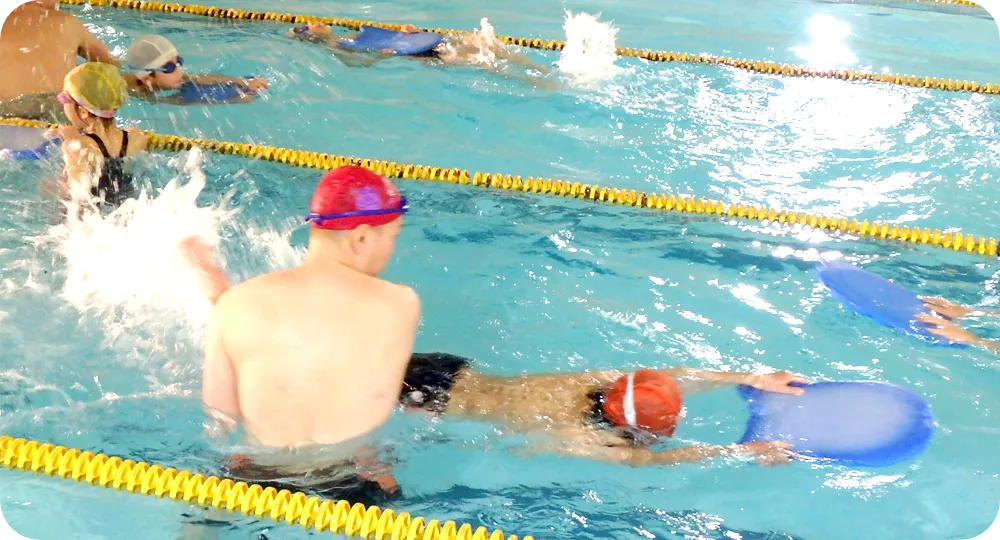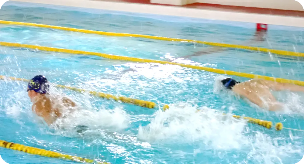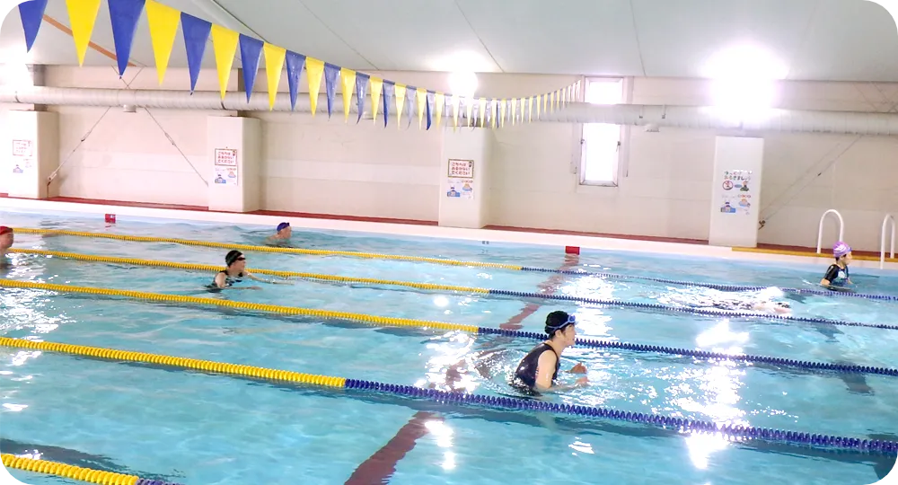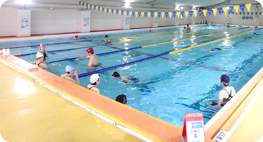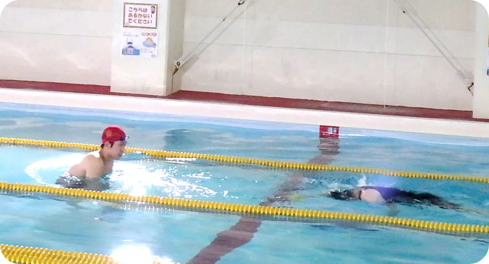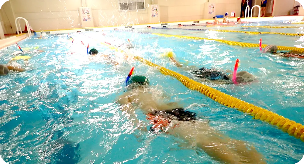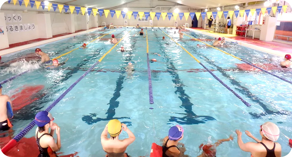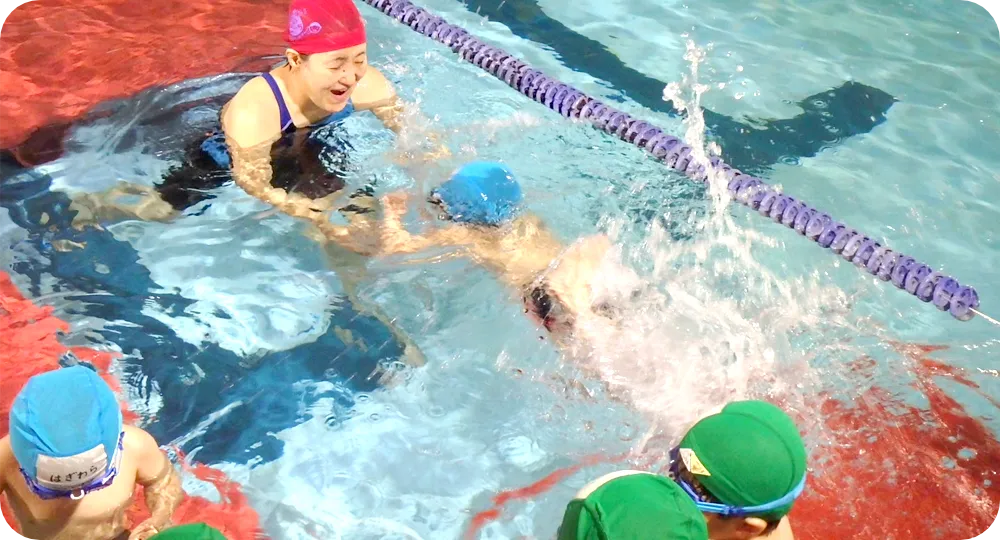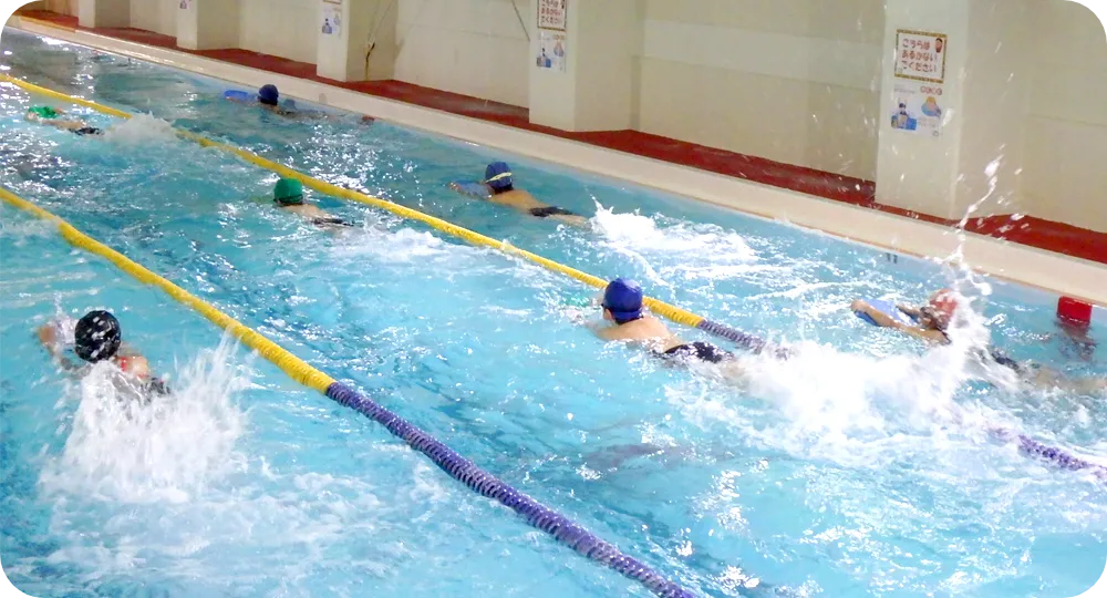 初心者から競技者まで対応するコースがあり、水に慣れるための基礎技術の習得から、4泳法の練習、大会に向けたトレーニングまで幅広く行っています。